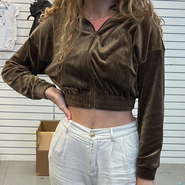 מק״ט H8031 קפוצ׳ון שרוול ארוך חום ירוק בקבוק קטיפה מידות S M L כמות 40